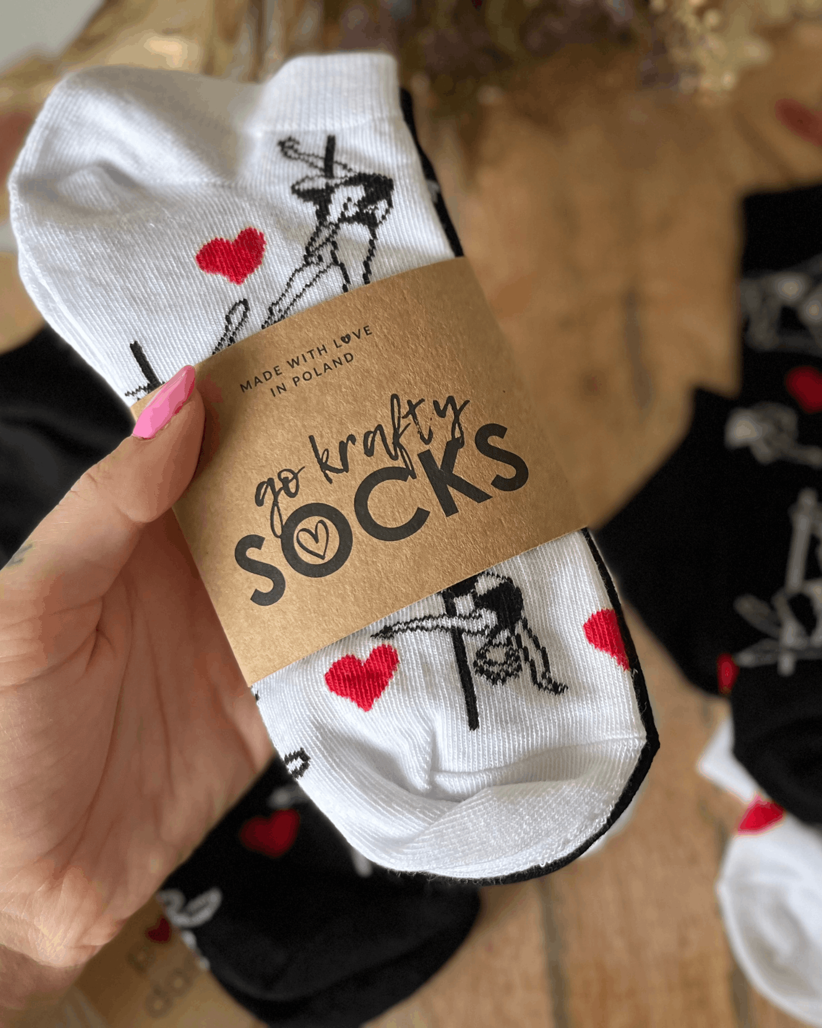 Skarpetki krótkie (Para Biała & Para Czarna) – Stylowy i praktyczny dodatek. Idealne do rozgrzewki, chronią stopy i świetnie wyglądają w zestawieniu z Twoim strojem do pole dance.